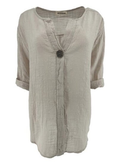 Blouse van linnen-look met 3/4 mouw en grote knoop.....17,95